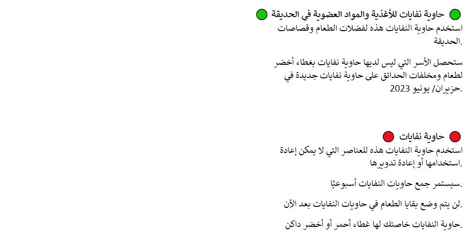 يتم جمع حاوية القمامة للطعام ومخلفات الحديقة كل أسبوع 🟢